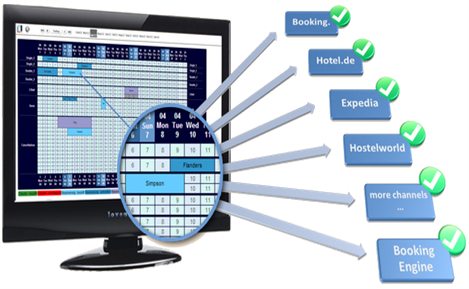 + Réservation par segmentation de clientèle (individuelle, groupe, société, tour operateur...), réservation par type de séjour (nuitée, formule week-end, semaine...), gestion des arrhes.